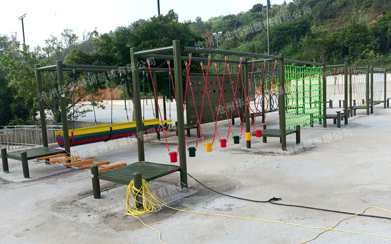 重走长征路游乐设备是一种新型的无动力游乐项目,以红军长征历史为背景进行设计。旨在教育训练人员学习红军不怕困难、勇往直前的长征精神,通过众多项目的综合训练,提高青少年身体协调、平衡、攀爬、跳跃等全身综合能力。