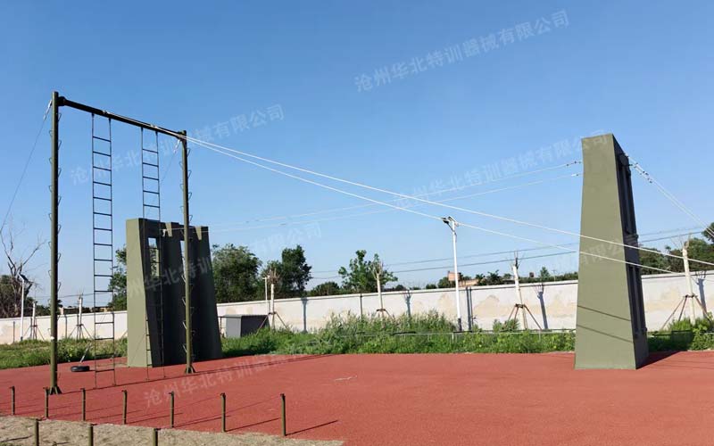 此消防攀爬横渡训练设施是根据客户训练需求及场地情况定制而成,主要包含绳索横渡训练项目和深...