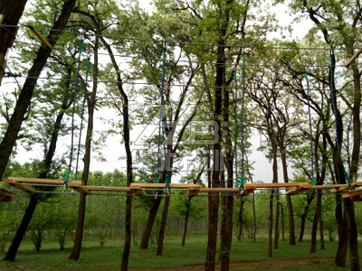 丛林探险是通过在树木与树木之间搭建各种不同风格,难易程度不同,超强刺激的拓展项目,利用专业的安全装备体验高空穿行,感受树上攀爬与林间穿越的刺激,能有效的提高参与者的勇气和自信心。可以使得体验者体会到不同于普通地面环境下的穿越感受。